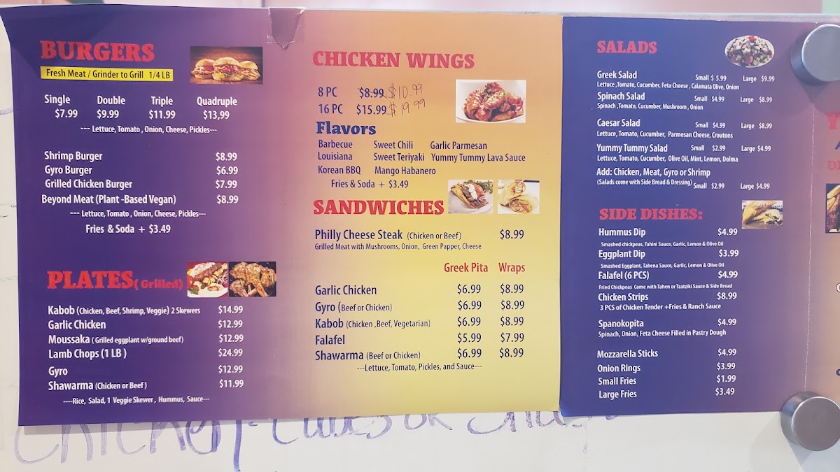 The menu at Far-Out Dough offers a delightful mix of Mediterranean and American comfort food, with standout dishes that cater to various tastes. For a hearty start, the Breakfast Burrito is a satisfying choice, packed with eggs, bacon, and savory fillings that hit the spot any time of day. Those craving Mediterranean flavors will enjoy the Gyro Platter, which presents a generous serving of tender, seasoned meat paired with fresh vegetables and a side of pita. The Beef Kabob Plate also stands out, featuring perfectly grilled skewers of beef with a smoky char, served alongside rice and a refreshing salad. For a handheld option, the Gyro Wrap Beef Lamb combines succulent beef and lamb, wrapped in a warm pita with tzatziki sauce, making it a flavorful and portable meal. To round off your meal, the Baklava provides the perfect sweet finish, offering a delicate and flaky pastry drenched in honey syrup and nuts. Whether you’re in the mood for a filling breakfast or a flavorful Mediterranean dish, Far-Out Dough’s menu promises something for everyone.